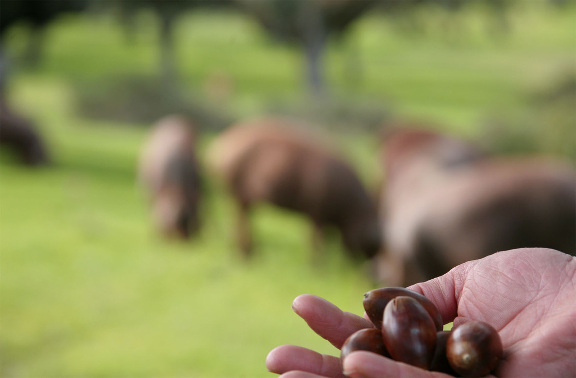 Desde esta empresa familiar se desarrolla todo el proceso: nacimiento, engorde a base de bellota, sacrificio, elaboración de embutido y secado de los jamones de bellota. Todo, de forma natural, para que prevalezca el auténtico sabor del Ibérico de bellota.